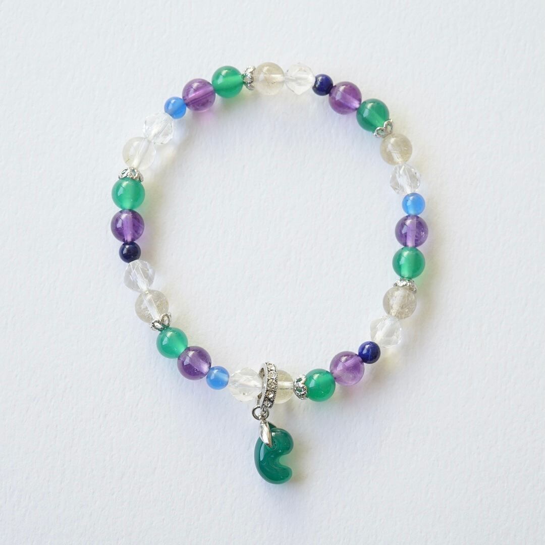 青めのう勾玉とラベンダーアメジストのブレスレット