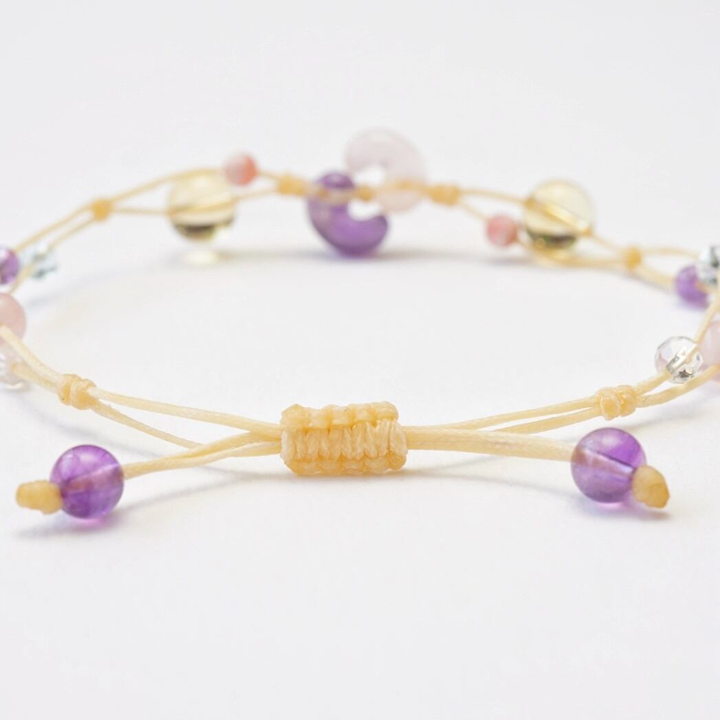 ローズクォーツ勾玉とアメジスト勾玉のブレスレット