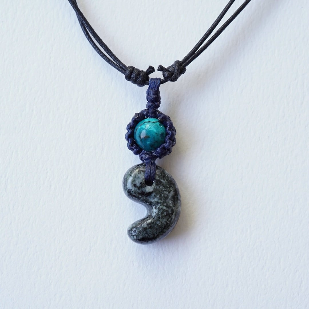 伊勢青石勾玉とブルークリソコーラのチョーカー