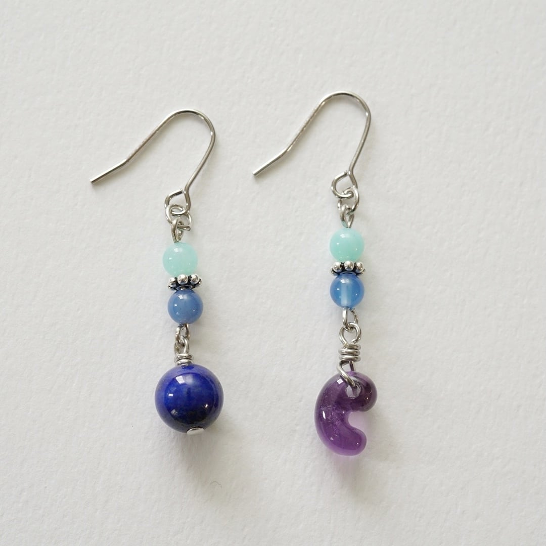 アメジスト勾玉とラピスラズリのピアス